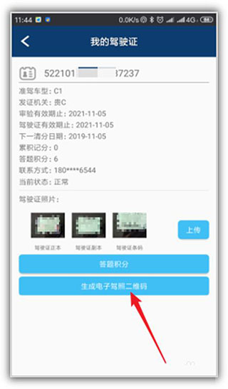 11、上传成功后,即可点击“生成电子驾照二维码”。