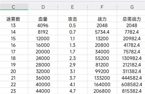 通过查表可得,这个属性可通过20线迷雾。通过对战力计算的理解,也能更加好的规划自身成长路线。