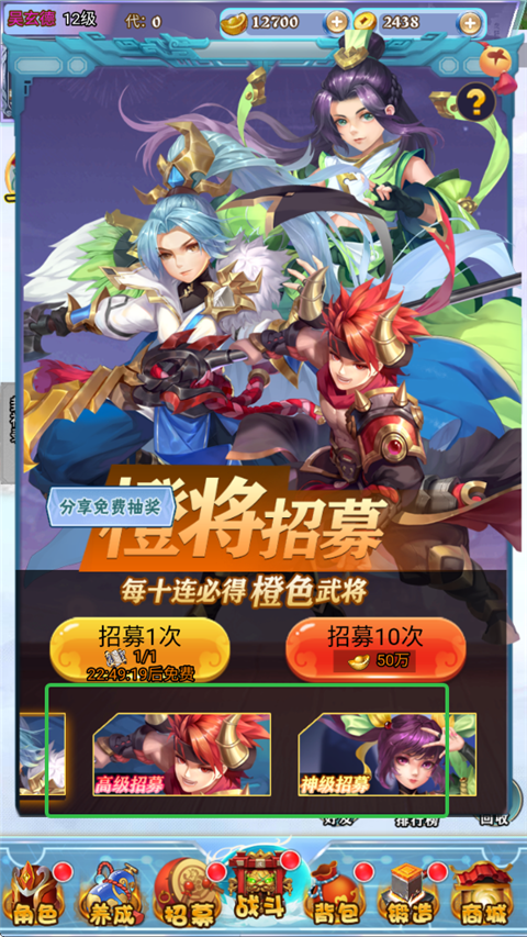 2、玩家可进行高级、神级等招募。