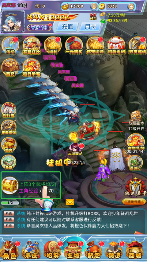 2、玩家可以通过招募或者活动获取西游人物,轻松布阵、热血战斗。