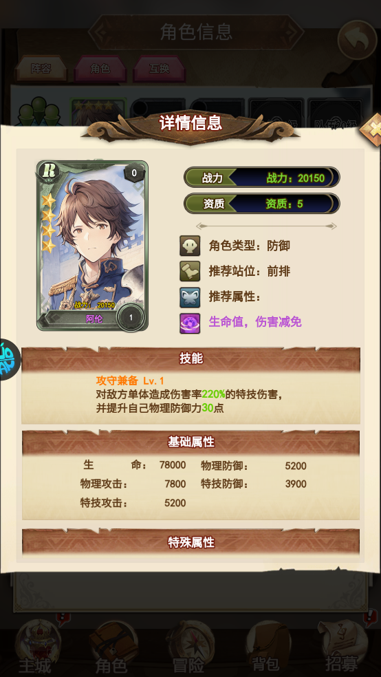 新手玩家拥有的第一个角色就是阿伦,阿伦与其他一些角色一同上场会产生增益羁绊效果。