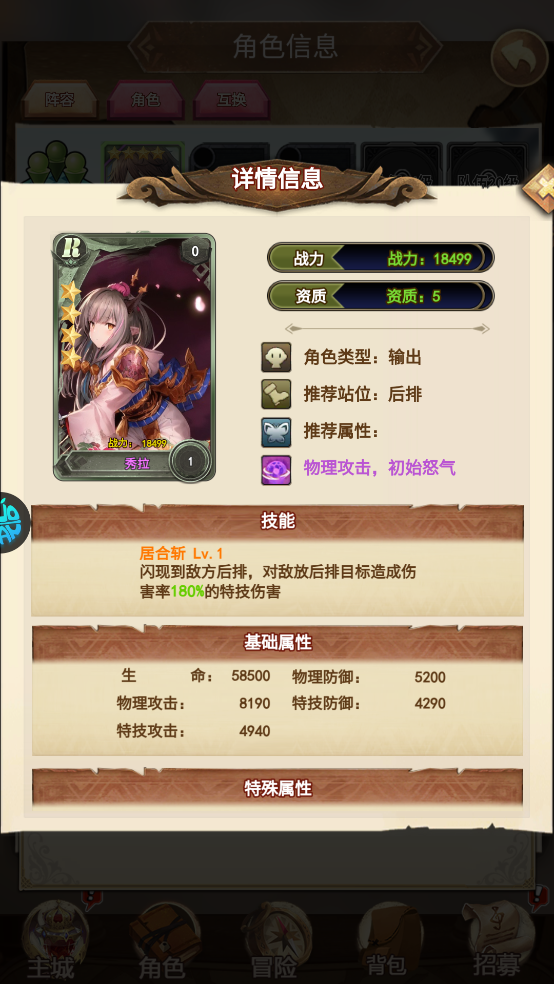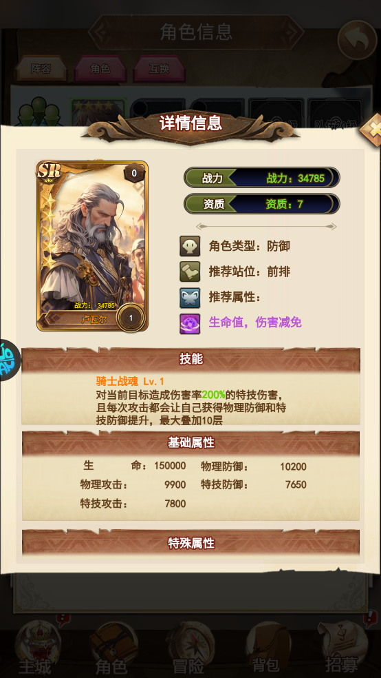 羁绊属性:特技攻击+10%、特技防御+10%