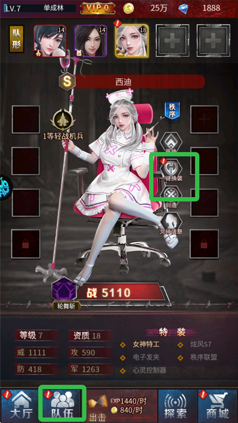 5、在队伍处为每位成员换上装备。