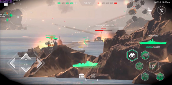 2、在现代战舰中,您与另外两艘船组成一个团队。这意味着您可以与朋友组队摧毁敌方船只。为了控制你的船,你有箭头,你可以在其中管理你移动的速度和方向。更重要的是,你可以随时在屏幕左下方的GPS地图上找到敌人。