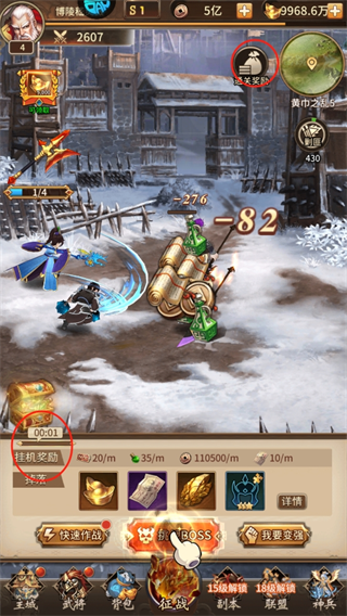 5、游戏内有通关奖励,耗时较短,挂机也可以获得奖励,玩家可轻松获取资源,推进游戏进程。