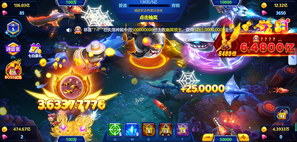 4、调节鱼炮、锁定大鱼、锁定BOSS、自动射击,各种玩法随心所欲。