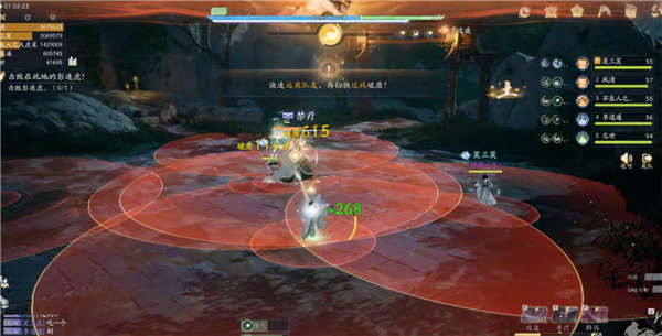 第一次大招是跳起来九阴白骨爪,和普通梅超风第二次大招没啥区别,一个玉带围腰或者桃花岛净化技能搞定。要注意的是这个时候可以输出,但要在脚下没有毒圈的情况下进行。很多人在毒圈边缘拼命抢输出,但其他人包括T插不了手,等BOSS下来容易OT(仇恨变成输出的)。BOSS下来后脚下如有毒圈,让T拉住仇恨把BOSS拉出毒圈,BOSS有个追踪技能会追着仇恨目标打。