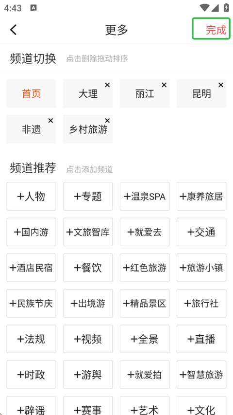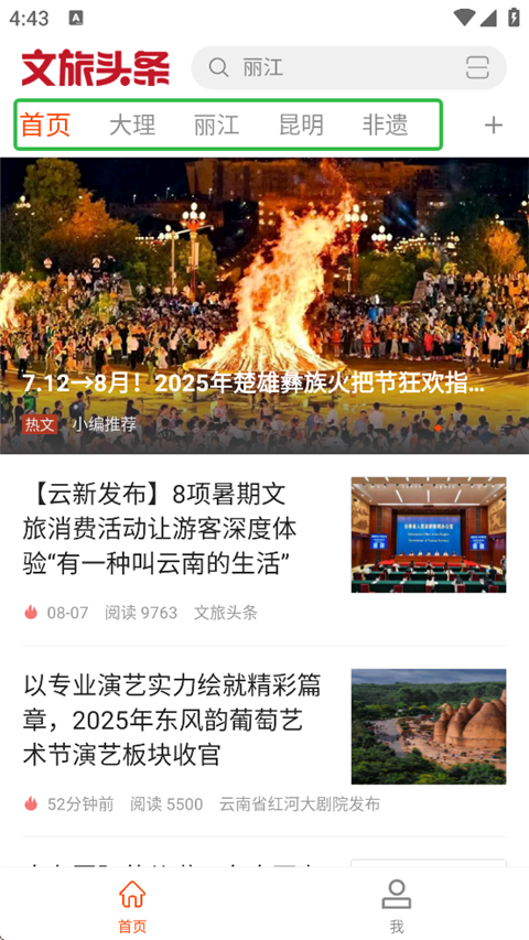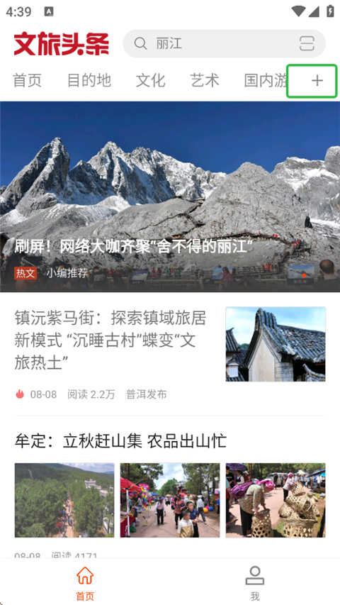 1、进入文旅头条新闻网App,点击频道最右边的【加号】。