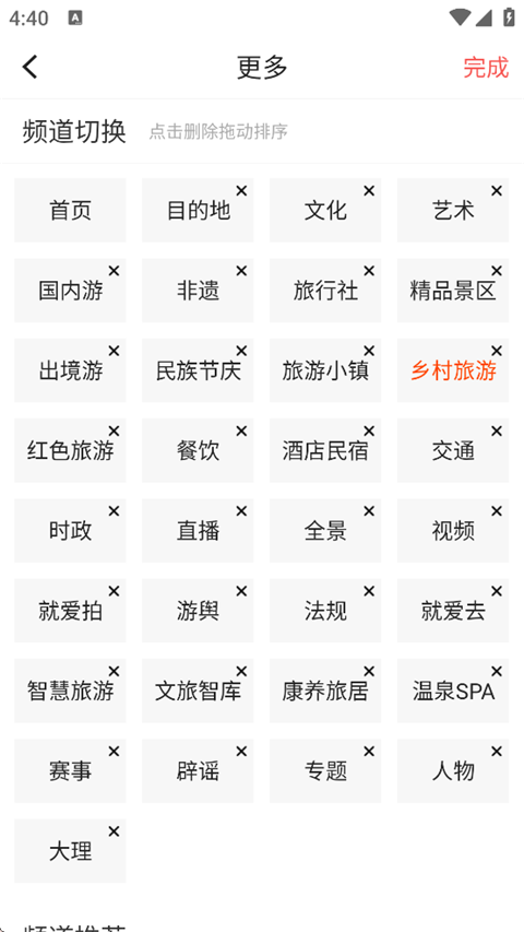 3、可以将不喜欢的频道删除,不在首页展示。