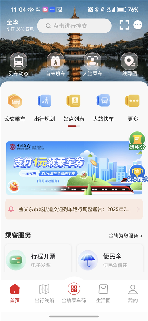 6、特色服务大厅:金华地铁资讯、交通新闻、车站详情。