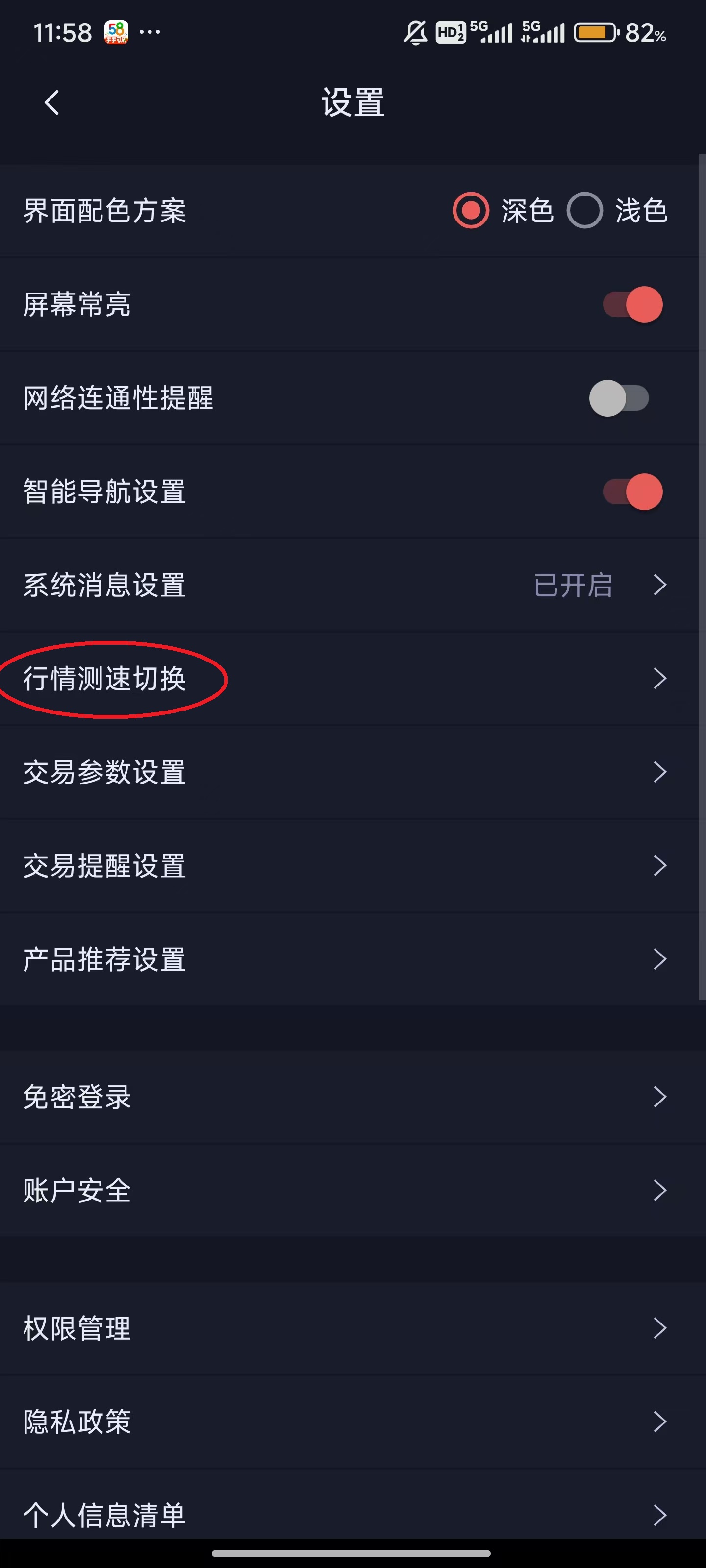 3、点击“行情测速切换”。