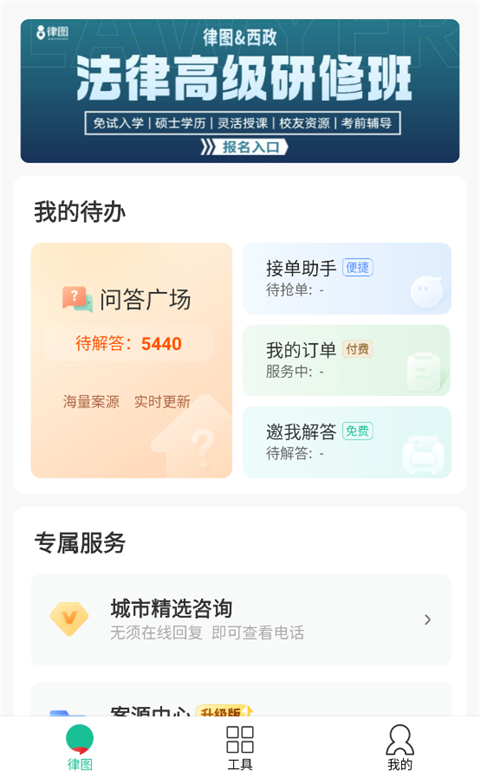无论您身处哪个地区、从事什么类型的法律工作,律图律师端App都能为您提供专属资源。您可以快速找到目标用户,并根据咨询问题的复杂程度进行解答或深入交流。此外,App还特别开设了“工具”和“视界”两大栏目,旨在帮助律师提升工作效率、拓宽视野并增强个人能力。