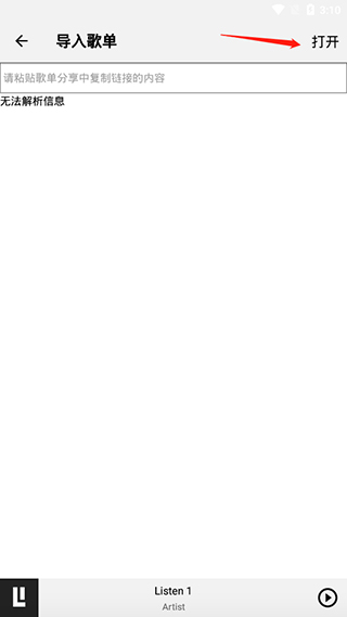 3、记得提现复制好你要导入的歌单链接,一般在分享歌单中可以复制,然后粘贴到这里就可以了。