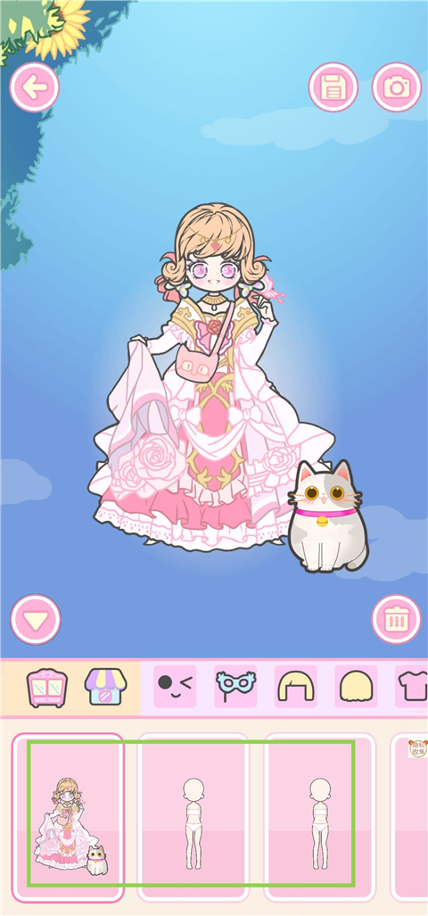 2、游戏内有多款风格服饰,如公主礼服,或日常休闲服。