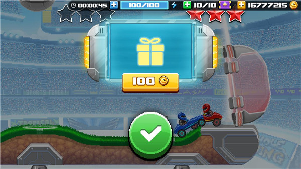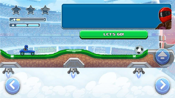 在这款游戏中,你可以通过左右移动和跳跃来击打足球,率先进球并获得3分就能赢得比赛。游戏里还有各种各样的赛车造型、不同的赛道场景以及多种游戏系统,能让你体验到刺激的赛车碰撞乐趣。