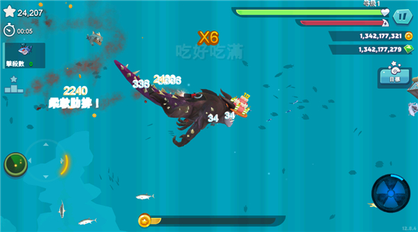 3、进入地图移动进行捕食,只能捕捉比你小的海洋生物