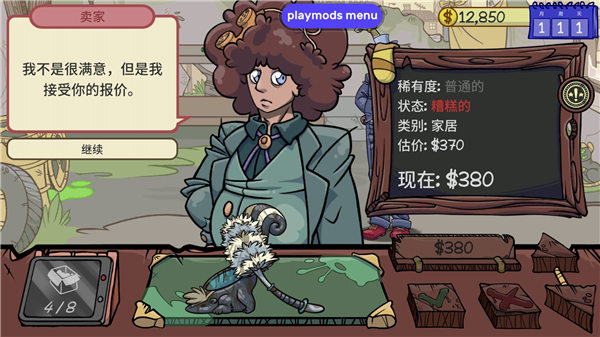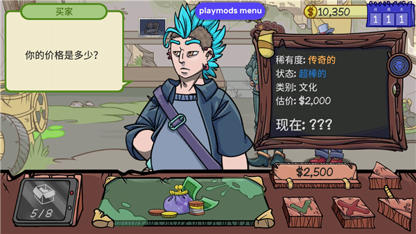 你有没有想过建立自己的商业帝国,还不用冒着最终睡在桥下的风险?玩转当铺人生2,成为一个当铺的老板,就像你的生活全指望它一样来讨价还价吧。本作延续了上一代的玩法,玩过1代的朋友们应该对粗糙的美术留有深刻的印象,2代的美术整体变得更为精细,UI和角色形象都有了很多改进,还新增了较多的随机事件等待你去探索,相信你会在玩的过程中总结出自己独特的砍价方式。同时你可以通过升级或者招募店员来增加你的属性值,你的魅力可以帮助你说服顾客,也能让你更加容易卖出假货,简单来说,就是能力值越强你对文物的估价也就越准确。