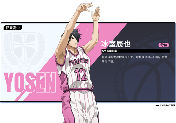 冰室辰也-分位 在美国长大,篮球技巧经过精心打磨,技术高超而华丽。