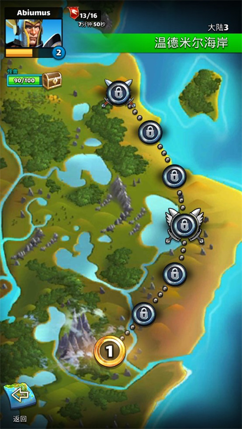 右上角有三个能量条,对应地图探索、天梯和个人挑战的能量。通过战斗可以获取这些资源,并可能掉落一些消耗品。目前地图分为两季,第一季有23章,每个章节有8个据点。击败一定章节后可以解锁第二季。
