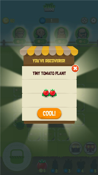 游戏玩法简单有趣:你可以购买番茄种子进行种植。当两个番茄成熟后,就可以将它们合并出售,赚取金币。有了金币,你就可以购买更多种子和其他农作物。种植的植物越大,结出的果实就越多,这样你就能获得更丰厚的收益。