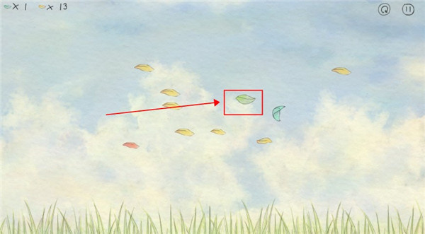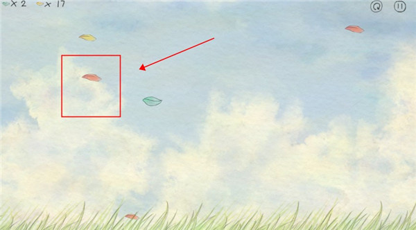 2、按住屏幕不松开可以使树叶一直上升,注意不要让他落到草地上。