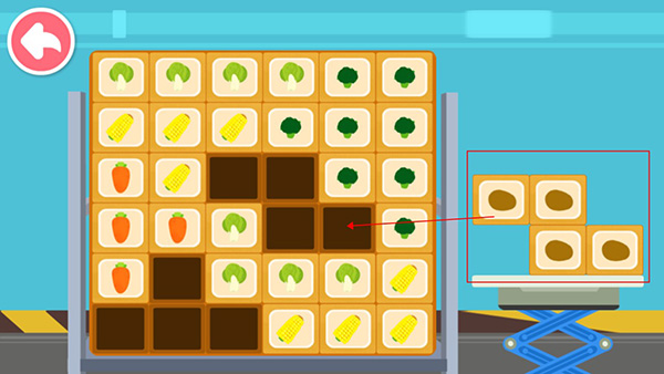 之后就可以让宝宝玩拼图游戏啦,这些拼图都是便利店的货物,需要宝宝把拼图填完整,然后将货物运送到便利店。