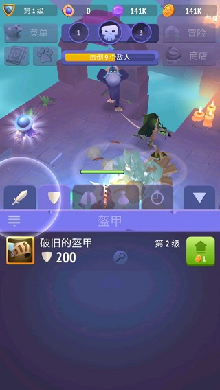 杀怪可以获得金币,金币可以用来提升我们武器的等级增加攻击力,以及强化盔甲增加防御力。升级的方法也十分简单,我们点击右下角的背包就可以对武器与装备进行升级。