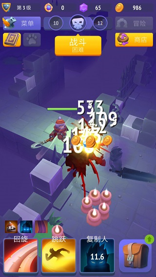 新玩家刚进入这款游戏中就会拥有两个技能,回旋与跳跃
