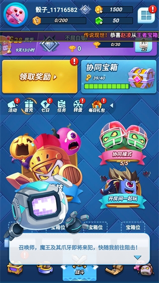 不仅如此,小编给玩家们带来的骰子大乱斗官方版内还有各种有趣玩法,比如协同模式,遇到难关,也可以和大神合作过关,而且游戏内还有非常多的新手礼包,可以帮助玩家们顺利的度过新手期。有感兴趣的玩家就快到本站下载吧!
