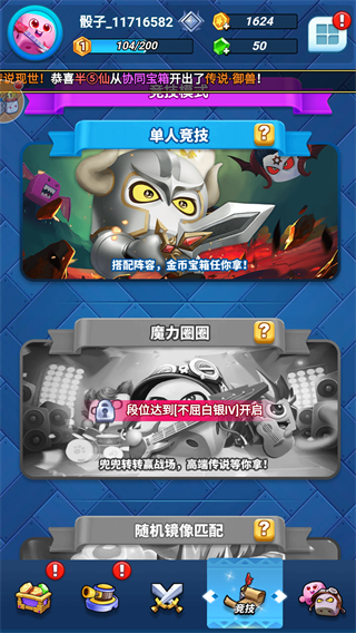 1、召唤,合成升级自己的骰子,解锁各色各样的特性,迎接各个不同的挑战
