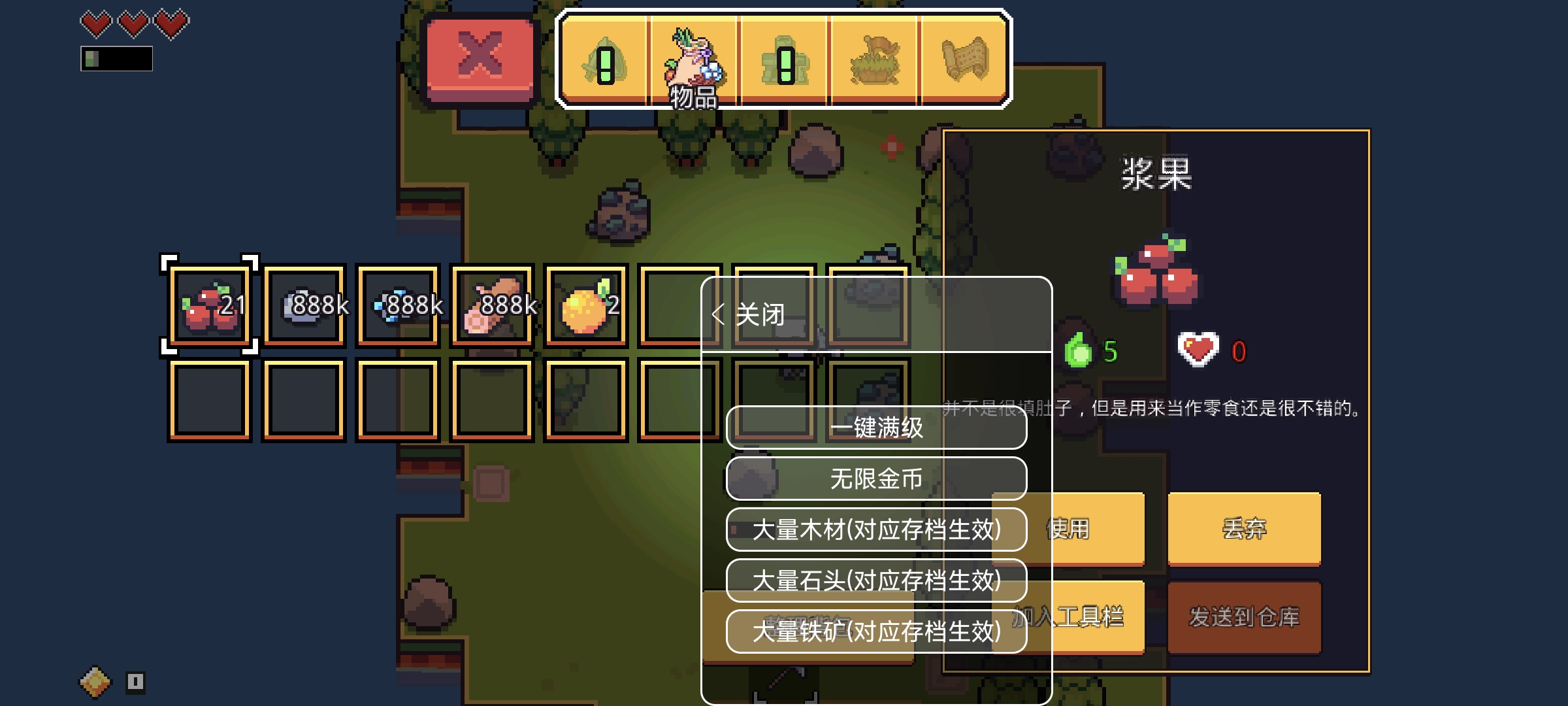《浮岛物语》的破解版加入了作弊功能,包括无限木材、石头、铁矿等资源,并附带一键满级和无限金币的功能(部分功能已被和谐)。这些修改器能让玩家更轻松地体验游戏。