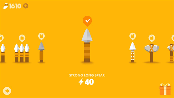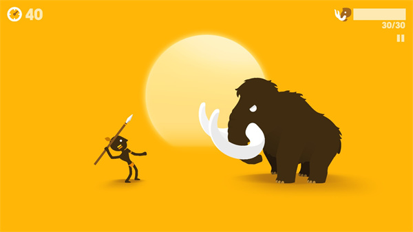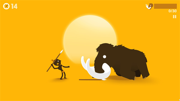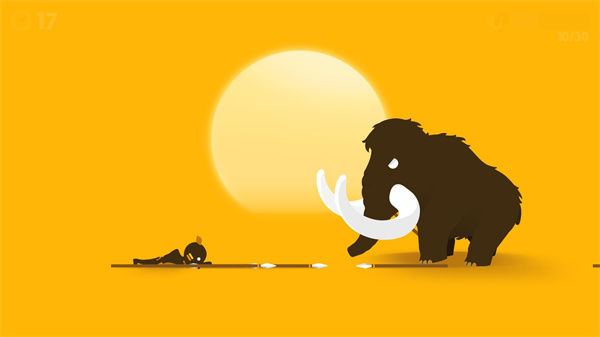 游戏操作很简单:按住屏幕往后退,躲避攻击;向左滑动屏幕蓄力投掷武器,目标头顶的血条耗尽就能过关。需要注意的是,如果被动物碰到就会失败。特别是猛犸象,它可以用象牙挡箭,所以要选好位置再出手。在商店里还能用象牙买更好的箭,帮助你赢得更多挑战。