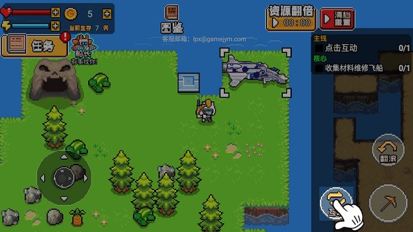 故事背景:一位意外坠机的乘客需要在荒岛上生存下去。你需要收集资源打造武器,寻找宝石修复飞船,最终成功逃离!