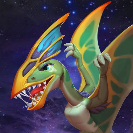 双型翼龙指它的两种类型的牙齿:颌骨前部用于穿刺的长牙和后部更小的尖牙。生活时代约距今1.5亿年前,生活区域为今英格兰以及墨西哥地区。在游戏中他颜色非常艳丽,像极古代传说中的凤凰,在游戏中属于稀有品质,偏重于攻击定位,生命星级、资源开采能力属于飞行龙中前沿,它是飞的最快的恐龙,毕竟时间最宝贵,飞得快比啥都好,带着它去战斗肯定回头率爆棚。