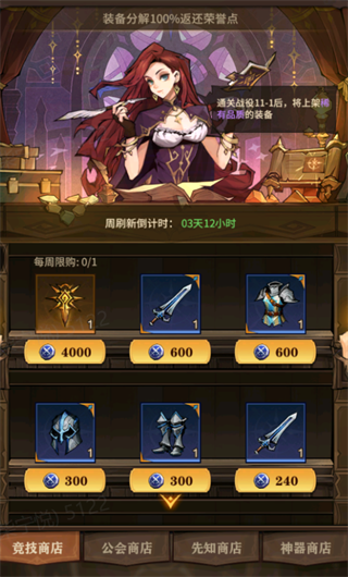 3、每天最好购买5次竞技场次数(只需50钻),尽早兑换高级装备、分解低级装备。