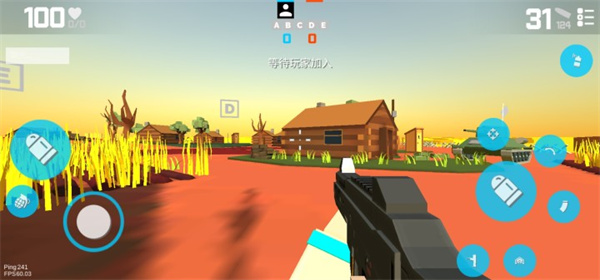 1、首先我们进入枪的粉丝手游中,点击右下方的键盘即可切换武器,前期玩家只有简单的冲锋枪和匕首;