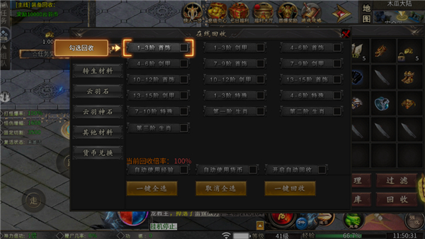3、垃圾装备都可回收成金币或者材料,金币可在土城仓管员处换成金条在拍卖行出售。