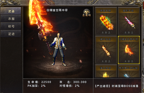 时装激活 激活各种武器、衣服和称号后,能提高生命值、攻击力等重要属性。