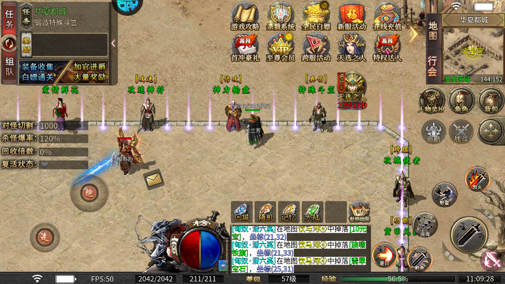 2、精血能兑换元宝以及杀戮值入口在顶部杀系统,元宝能兑换钻石入口在大陆安全区NPC货币兑换