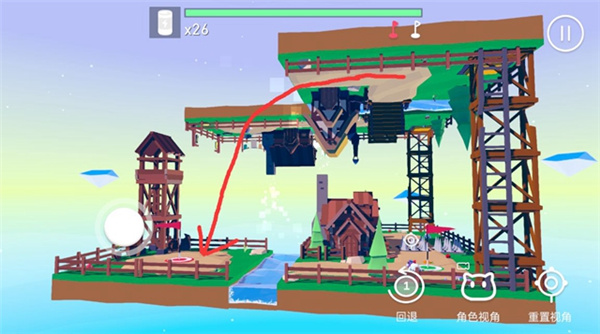 关键是要找到两个按压机关的位置,并且持续按住它们才能连桥。这时候就需要用到游戏里的重要道具——石头。
