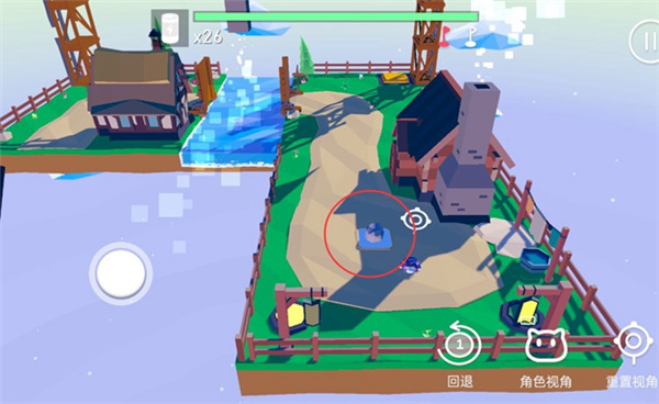 当引力方向改变后,进入重叠空间的小猫会自动落到上方平面。不过接下来的目标点却被一条河流隔开了。