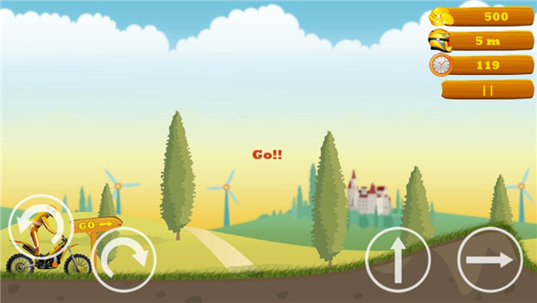 3、左边的按键可控制摩托车翻转,右边按键是跳跃和前进