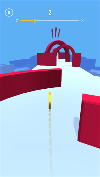 3、游戏中玩家需要控制金币来躲避障碍的拦截,当金币撞到红色物体或掉下赛道即游戏结束;