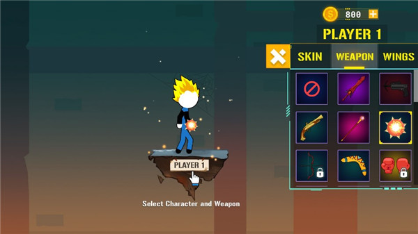 火柴人战争英雄游戏中玩家将会进入开放的世界,在这里你可以选择你喜欢的角色,为她们更换皮肤、武器以及翅膀等,然后选择你想玩的模式进行参与战斗。