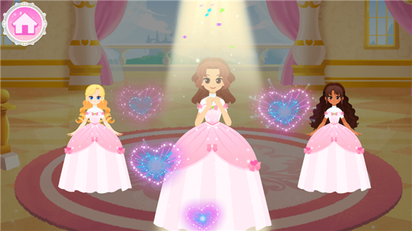 游戏中,每个公主都带有魔法能力,你需要帮助她们打造独特的造型,参加王国的舞会,并击败女巫来赢得碎片。游戏特色包括:
