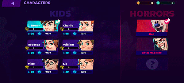 5、当然,游戏内还拥有多个人物和角色可供选择,主页右侧人物按钮直接快捷进入,选择做“Rod”还是“Sister Madeline”自己确定,开始冒险吧。