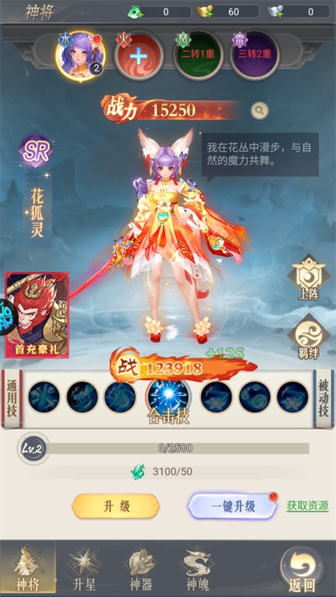5、神将系统:不同属性的神将有不同的加成,玩家可以根据自身的属性来搭配合适的神将,并将神将进行升级突破