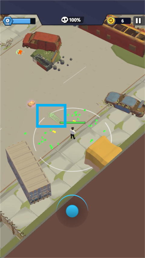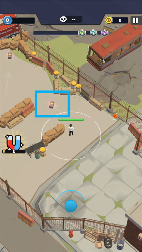 任务是将他们全部射杀并保持活力,以便在自上而下的动作射击游戏中继续前进。在生存模式中,你必须尽可能长时间地生存,数百只僵尸的无尽波浪向你袭来。杀死尽可能多的丧尸来收集战利品并升级你的英雄和他的枪械。