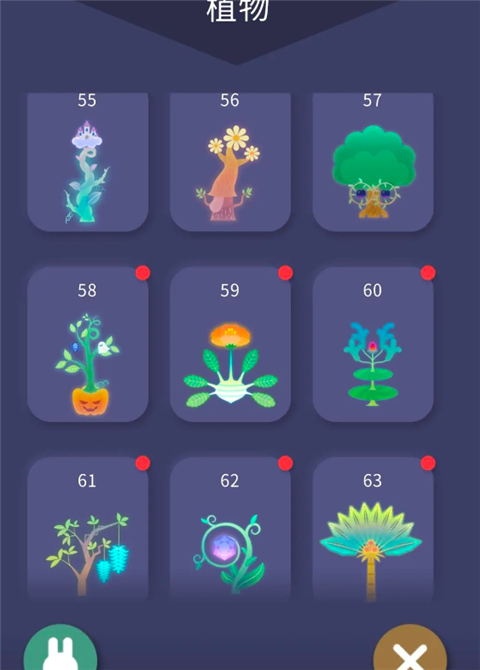 游戏中的植物图鉴共有74种,新植物会有红点标记。查看后红点会消失。