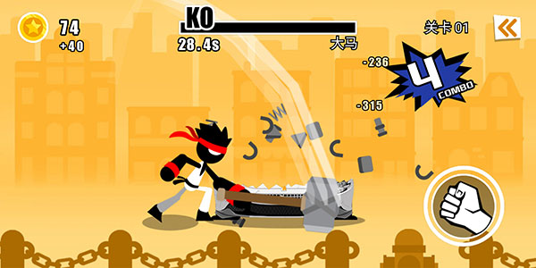 1、暴怒的拳头玩起来还是非常的轻松简单的,并不会有多大的难度,很值得去游戏